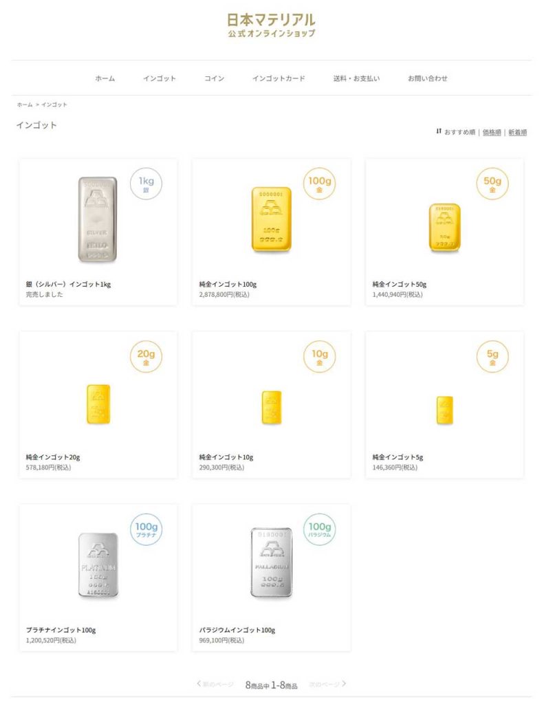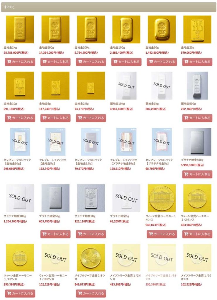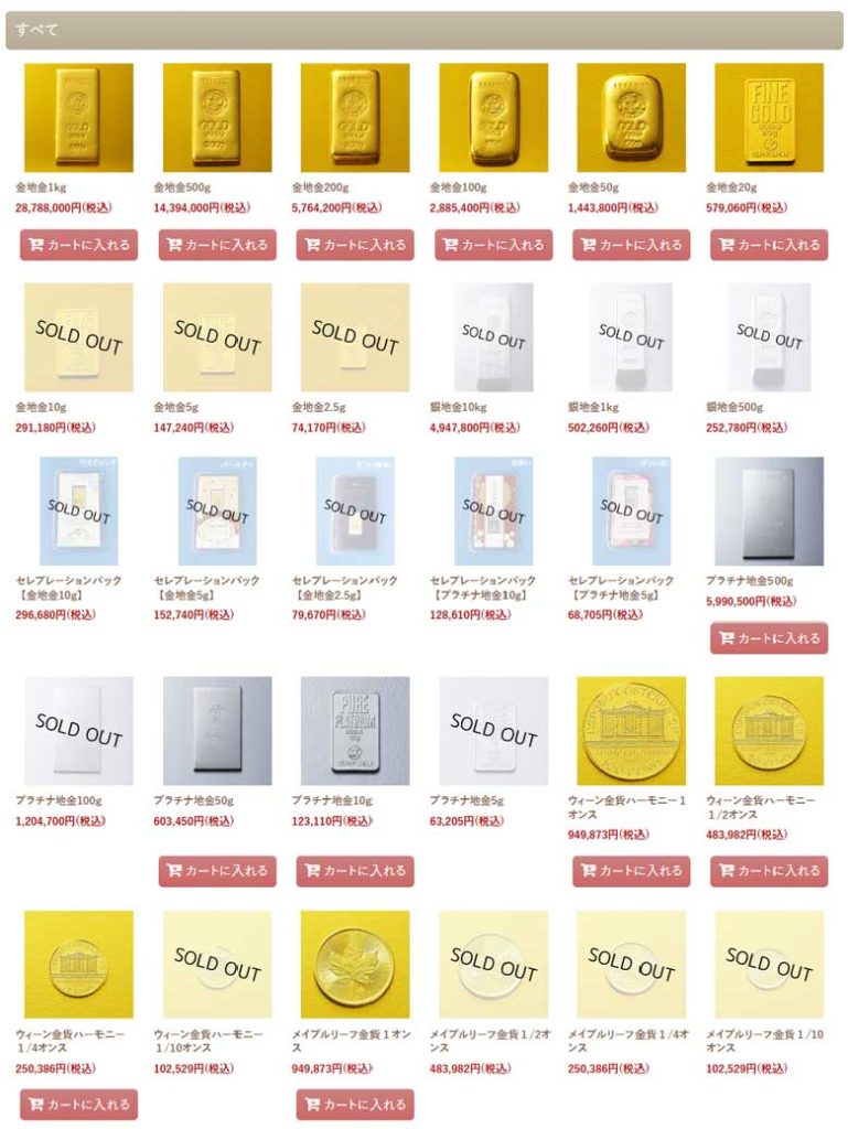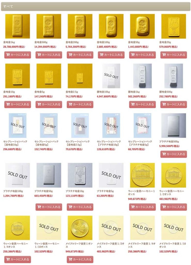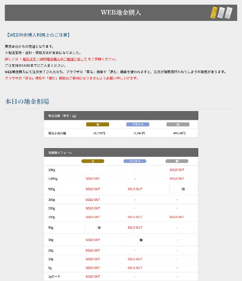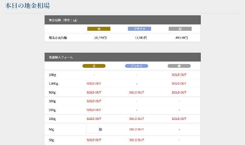 一方で金地金の販売はあり、5gから順に完売。