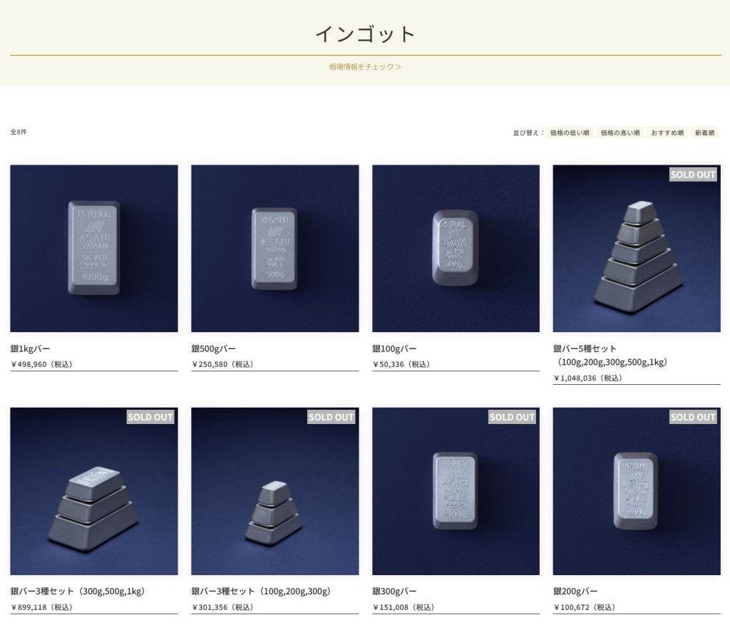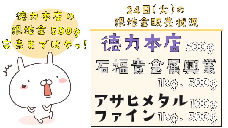 特に徳力本店の銀地金500gは、開始直後に完売し購入難易度はかなり高め。