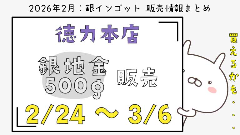 2月24日(火)10時より、銀地金500gの販売が予定されています。