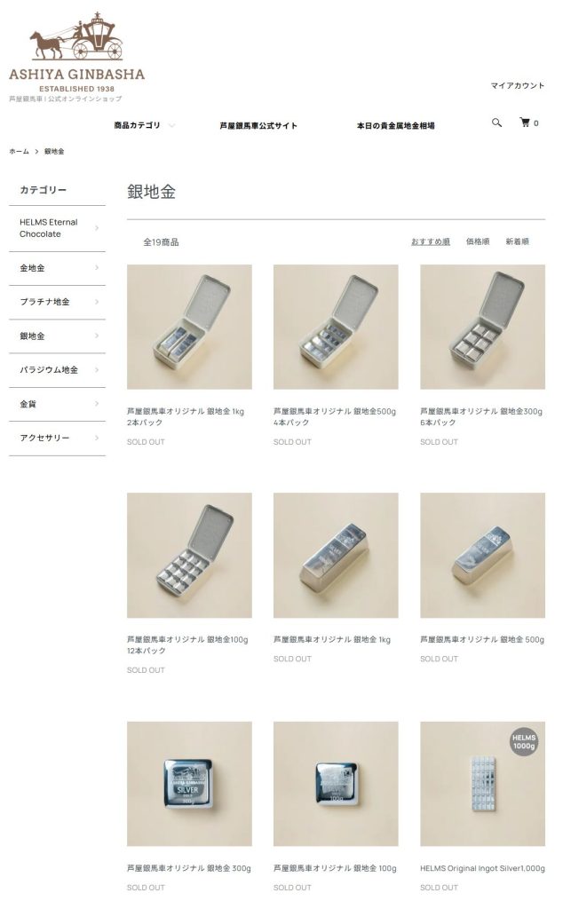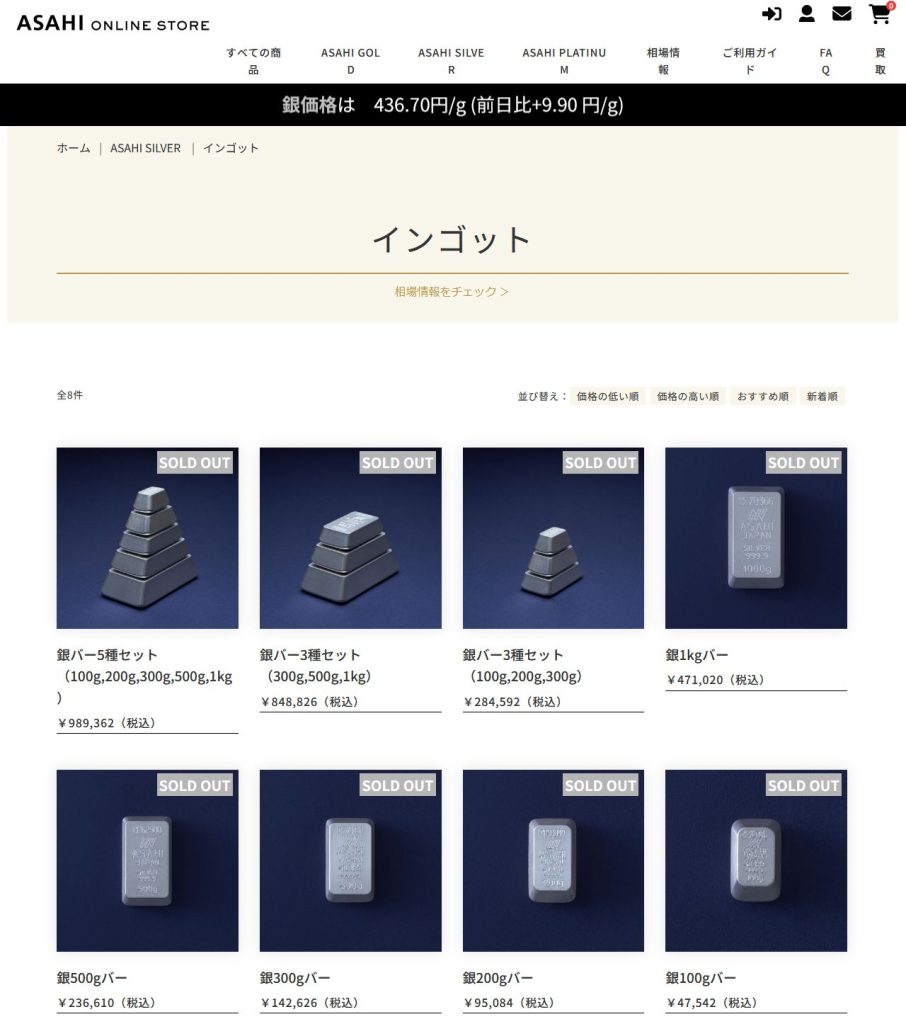 現在銀地金は売り切れとなっており、購入できない状況です。
