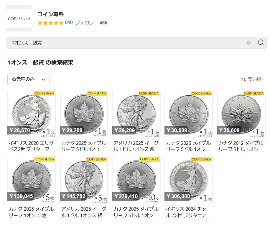 コイン専科(コインパレス)は、地金型銀貨から記念銀貨まで幅広く扱う コイン専門店で、品揃えの豊富さに定評があります。