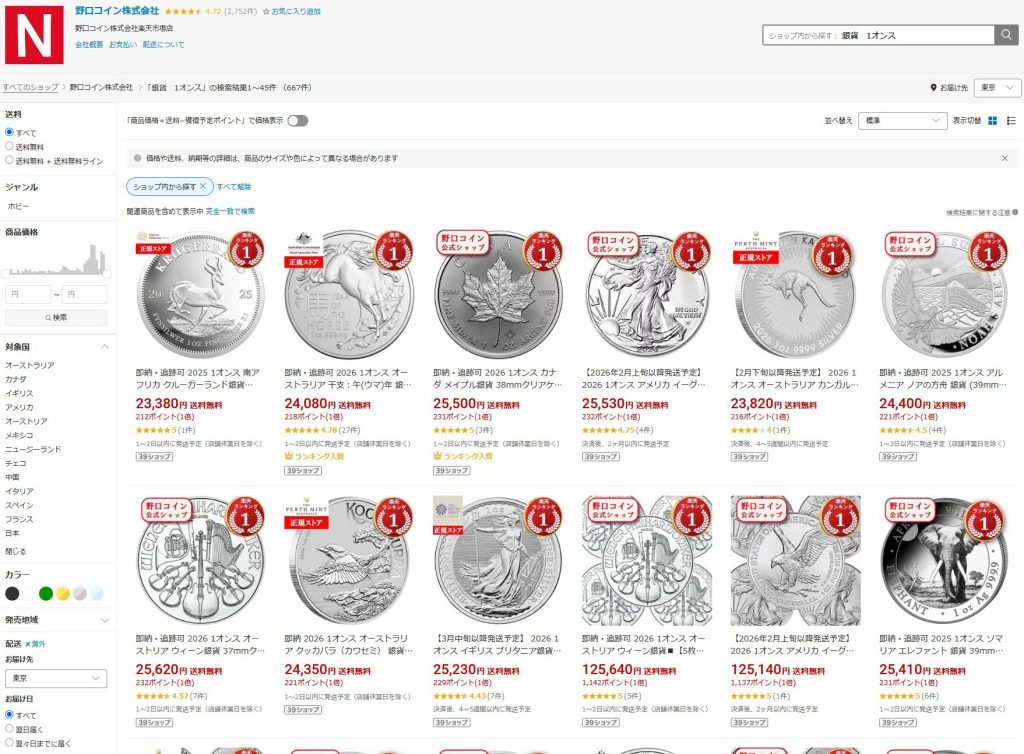 同じ1オンス銀貨でも、購入する店舗によって数千円単位の価格差が生じます。