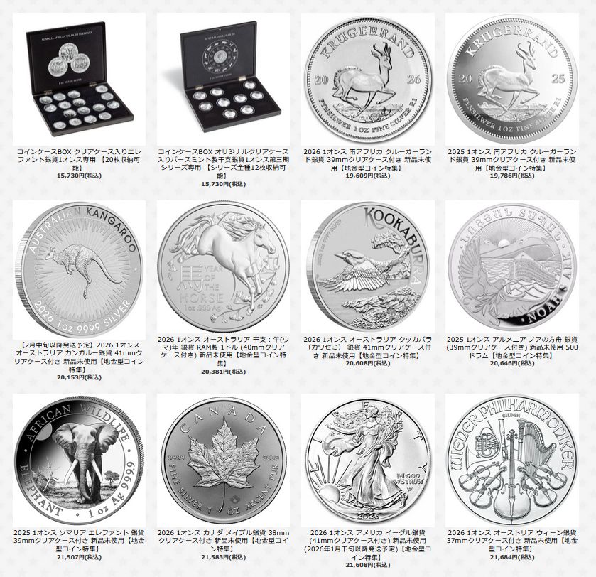 - 地金型銀貨からコレクター向け商品まで幅広く取り扱い